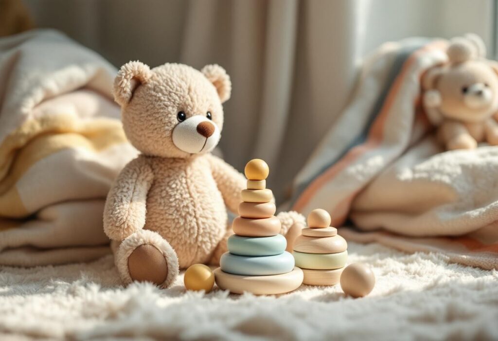 Quant aux peluches et aux doudous, ils instaurent un sentiment de sécurité indispensable durant les phases d’endormissement ou lors des déplacements. Avec leur texture douce, ces compagnons aident le bébé à explorer le toucher et à reconnaître différentes matières.
